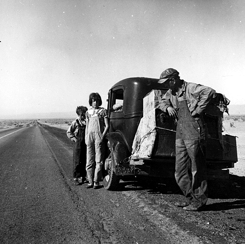 La 66 fue la ruta principal de los emigrantes que iban al Oeste, especialmente durante la ‘Dust Bowl’ (tormentas de polvo) de los años 30, y sostuvo la economía de las zonas que la carretera atravesaba. Cuando estalló la Segunda Guerra Mundial, la 66 se convirtió en una vía fundamental para transportar armas, tropas y material de guerra a través del país. A consecuencia de este tráfico pesado, la carretera sufrió graves desperfectos, pero se mantenía como la única vía para cruzar el país de Este a Oeste. Los siguientes fueron los años dorados de la Ruta 66…